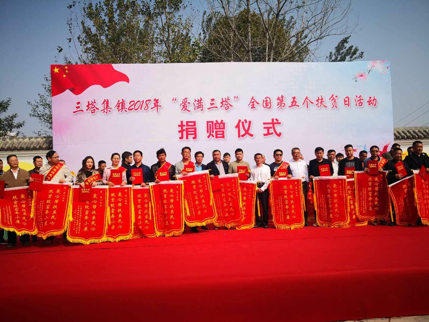 活動儀式上,潁州區(qū)發(fā)改委主任、三塔集鎮(zhèn)黨委書記陳祥軍代表鎮(zhèn)黨委政府對出席活動儀式的社會各界愛心人士表示衷心感謝,他說,三塔集鎮(zhèn)脫貧工作離不開社會各界大力支持,作為潁州區(qū)扶貧大鎮(zhèn),三塔集鎮(zhèn)目前仍有4個貧困村沒有脫貧,貧困人口還有2000多人沒有脫貧摘帽,通過此次全國第五個扶貧日活動儀式,進一步推動三塔集鎮(zhèn)脫貧攻堅工作順利進行,確保全鎮(zhèn)如期脫貧。捐款儀式和文藝演出交叉進行,演出節(jié)目有本村群眾表演的廣場舞、民間藝術旱船表演、豫劇朝陽溝、舞蹈、小品、歌曲等。三塔企業(yè)界愛心人士代表、社會各界愛心人士、鎮(zhèn)直教育、衛(wèi)生部門、鎮(zhèn)村干部等踴躍捐款,整整2個多小時共計收到捐款達110萬元,其中,淮海集團捐款45萬元。