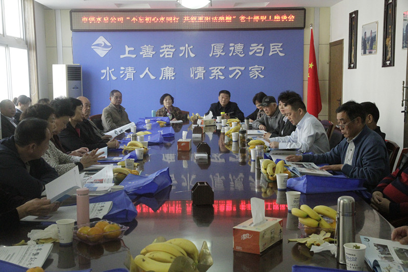 供水老干部職工代表們首先來到了二水廠參觀了新制水工藝流程、廠區(qū)綠化建設(shè)、藍天水質(zhì)檢驗有限公司和職工文體活動中心。隨后,老干部職工在總公司三樓會議室歡聚一堂,在集中觀看了總公司文明創(chuàng)建展示片后,進行了座談。張傳峰代表總公司全體干部職工向老干部職工們致以誠摯的問候和節(jié)日的祝福,感謝他們在供水事業(yè)的發(fā)展中所做出的奉獻和努力。張傳峰就近期總公司經(jīng)營管理、供水保障、服務(wù)能力、黨建工作、文明創(chuàng)建、企業(yè)文化建設(shè)、供水服務(wù)品牌等方面的發(fā)展情況向大家進行了介紹。同時,也希望老干部職工們能繼續(xù)發(fā)揮光和熱,積極為總公司發(fā)展多提寶貴意見和建議,共同推動供水事業(yè)的發(fā)展和建設(shè)。參加座談的老干部職工們也暢談了活動感想,通過近距離地參觀,感受到了新技術(shù)、新工藝給供水工作帶來的變化,真真切切地體會到了供水事業(yè)發(fā)展的日新月異。