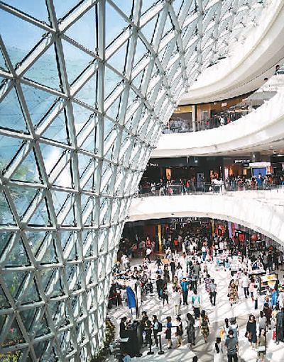 顧客在海南三亞海棠灣免稅店內(nèi)游覽、購物。新華社記者 郭程 攝