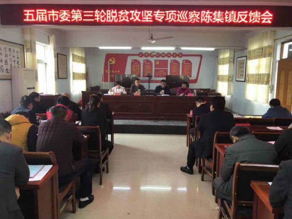 會上,五屆市委第三輪脫貧攻堅(jiān)專項(xiàng)巡察第七巡查組通報(bào)了巡察陳集鎮(zhèn)的反饋意見。