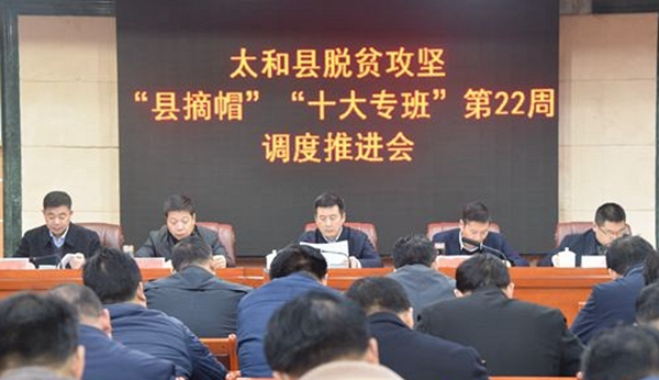 11月19日上午,太和縣召開脫貧攻堅(jiān)“縣摘帽”“十大專班”第22周調(diào)度推進(jìn)會,縣委書記楊波,縣委副書記、縣長劉牧愚出席會議并講話。各鄉(xiāng)鎮(zhèn)黨委書記、駐村工作專班牽頭負(fù)責(zé)人、縣脫貧攻堅(jiān)“縣摘帽”“十大專班”辦公室主任和“十大工程”牽頭單位負(fù)責(zé)同志、縣8個脫貧攻堅(jiān)專項(xiàng)督查組組長參加會議。