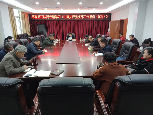11月27日上午,阜南縣司法局召開機關(guān)支部黨員會議,專題學(xué)習(xí)《中國共產(chǎn)黨支部工作條例(試行)》,會議由局黨組書記、局長丁傳珠主持。