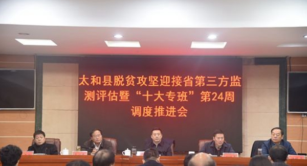 12月3日上午,太和縣召開(kāi)脫貧攻堅(jiān)迎接省第三方監(jiān)測(cè)評(píng)估暨“十大專(zhuān)班”第24周調(diào)度推進(jìn)會(huì),縣委書(shū)記楊波,縣委副書(shū)記、縣長(zhǎng)劉牧愚出席會(huì)議并講話(huà)??h脫貧攻堅(jiān)“縣摘帽”“十大專(zhuān)班”組長(zhǎng)、副組長(zhǎng)、辦公室主任,縣直各單位主要負(fù)責(zé)同志和各鄉(xiāng)鎮(zhèn)黨委書(shū)記、分管負(fù)責(zé)同志參加了會(huì)議。