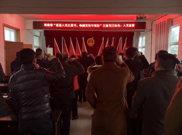 戎成衛(wèi)帶領(lǐng)鎮(zhèn)村全體黨員干部重溫了入黨誓詞,面對鮮紅的黨旗,大家舉起右拳,以飽滿的精神狀態(tài)和鏗鏘有力的聲音,向黨和人民做出了莊嚴承諾。