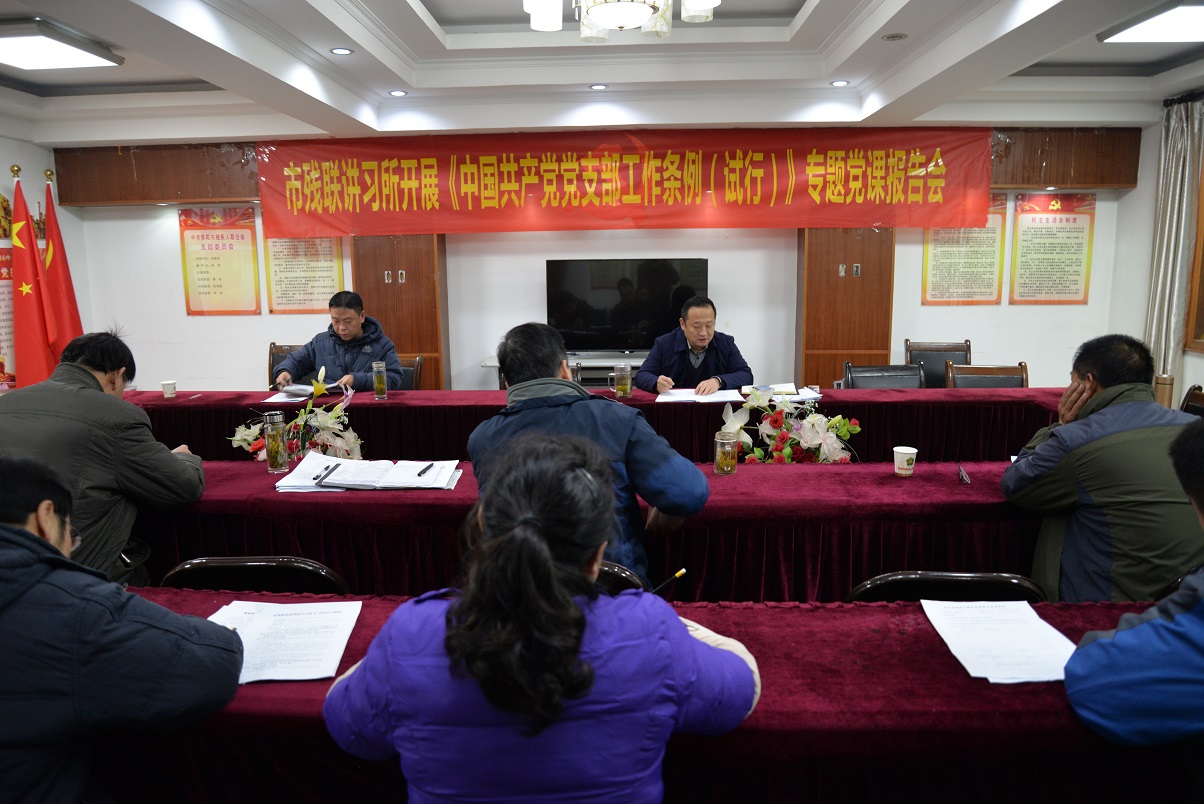 12月10日下午,市殘聯(lián)講習(xí)所開展《中國共產(chǎn)黨支部工作條例(試行)》專題黨課報告會,市殘聯(lián)黨支部書記劉智宏作專題黨課報告。會議由市殘聯(lián)黨支部副書記朱軍主持,支部全體黨員參加會議。