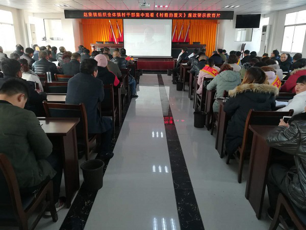 為進(jìn)一步強(qiáng)化黨員領(lǐng)導(dǎo)干部廉潔自律意識,扎實(shí)推進(jìn)掃黑除惡專項(xiàng)斗爭工作,通過身邊事教育身邊人,警醒廣大黨員干部以案為戒、筑牢防線,增強(qiáng)拒腐防變能力。近日,趙集鎮(zhèn)于鎮(zhèn)三樓會議室組織鎮(zhèn)、村干部集中觀看警示教育片《村霸的覆滅》。