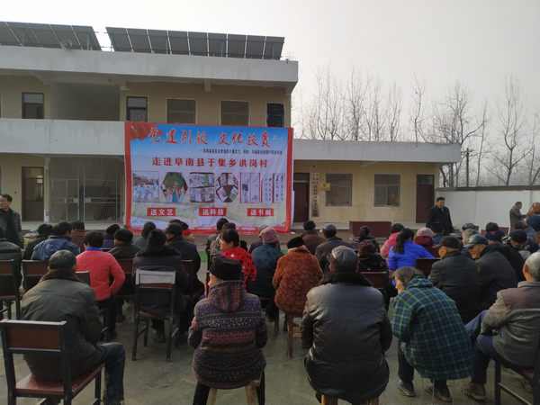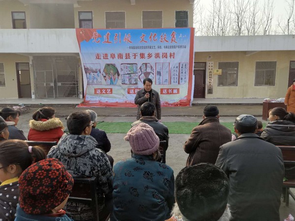 12月23日,阜南縣直機(jī)關(guān)工作委員會(huì)組織開(kāi)展“黨建引領(lǐng),文化扶貧”——文藝、科技、書(shū)畫(huà)走進(jìn)貧困戶系列活動(dòng),來(lái)到于集鄉(xiāng)洪崗村,為洪崗村村民送去了豐盛的文化大餐、先進(jìn)的農(nóng)業(yè)知識(shí)和充滿正能量的書(shū)畫(huà)作品及科技書(shū)籍。