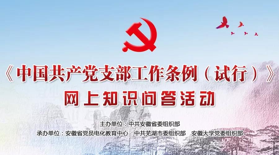 為深入學(xué)習(xí)宣傳貫徹《中國共產(chǎn)黨支部工作條例(試行)》(以下簡稱《條例》),引導(dǎo)基層黨組織和廣大黨員準(zhǔn)確理解把握《條例》內(nèi)容,強化實際工作運用,營造濃厚學(xué)習(xí)氛圍,“安徽先鋒”系列黨員教育平臺組織開展學(xué)習(xí)宣傳貫徹《條例》網(wǎng)上知識問答活動。