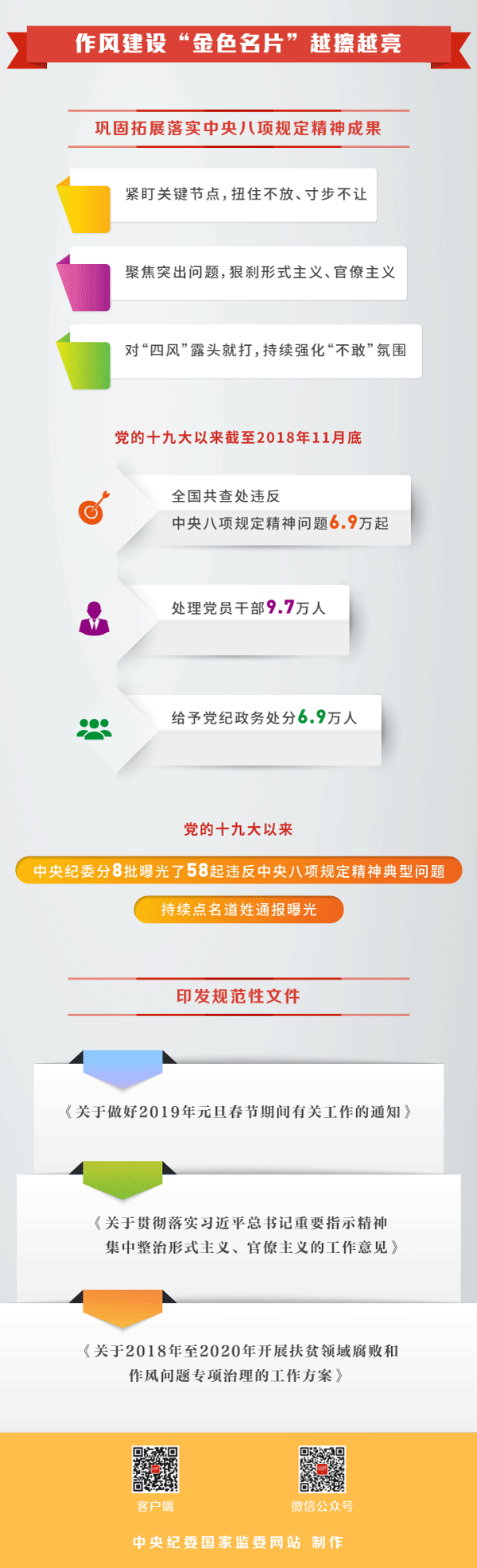 黨的十九大報(bào)告提出,鞏固拓展落實(shí)中央八項(xiàng)規(guī)定精神成果,繼續(xù)整治“四風(fēng)”問(wèn)題,堅(jiān)決反對(duì)特權(quán)思想和特權(quán)現(xiàn)象。去年年初召開(kāi)的十九屆中央紀(jì)委二次全會(huì)就鞏固拓展落實(shí)中央八項(xiàng)規(guī)定精神成果作出重要部署。一年來(lái),各級(jí)紀(jì)檢監(jiān)察機(jī)關(guān)把監(jiān)督落實(shí)中央八項(xiàng)規(guī)定精神、糾正“四風(fēng)”作為重要政治任務(wù),聚焦監(jiān)督執(zhí)紀(jì)問(wèn)責(zé),層層壓實(shí)責(zé)任,持之以恒正風(fēng)肅紀(jì),持續(xù)擦亮作風(fēng)建設(shè)這張“金色名片”。