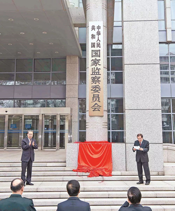 上午8時(shí)58分,中華人民共和國(guó)國(guó)家監(jiān)察委員會(huì)在北京正式揭牌。在現(xiàn)場(chǎng)熱烈的掌聲中,黨和國(guó)家反腐敗工作掀開新的一頁(yè)。
