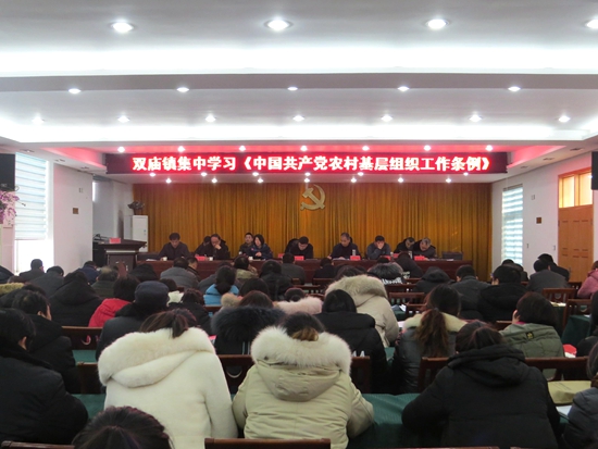 1月15日,太和縣雙廟鎮(zhèn)召開鎮(zhèn)村干部大會,鎮(zhèn)黨委副書記、鎮(zhèn)長黃林出席會議并講話,鎮(zhèn)黨委副書記曹文婷帶領大家學習了新修訂的《中國共產(chǎn)黨農(nóng)村基層組織工作條例》。