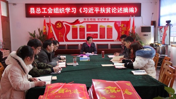 1月21日,太和縣總工會(huì)組織集中學(xué)習(xí)《習(xí)近平扶貧論述摘編》,全體機(jī)關(guān)人員參加會(huì)議??h總工會(huì)黨組書(shū)記、副主席劉靜主持會(huì)議。