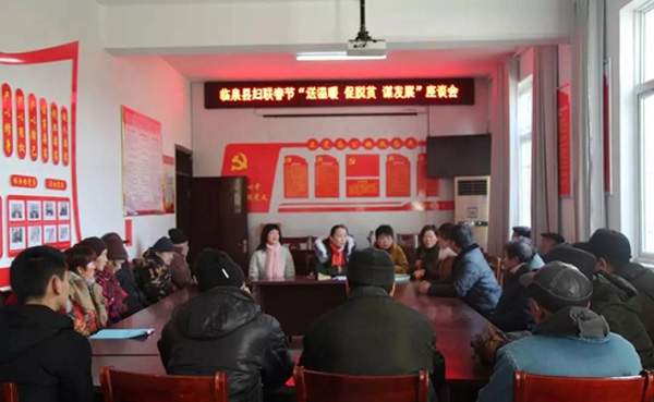 春節(jié)來臨之際,為讓貧困戶度過一個溫暖祥和的傳統(tǒng)節(jié)日,臨泉縣婦聯(lián)全體幫扶責任人,心系“窮親戚”,于近日在城關鎮(zhèn)古城社區(qū)召開建檔立卡貧困戶交流座談會,同貧困戶促膝交談,了解民意,共謀致富良策,并開展了慰問活動,為貧困戶送去了節(jié)日慰問品和濃濃的關愛之情。