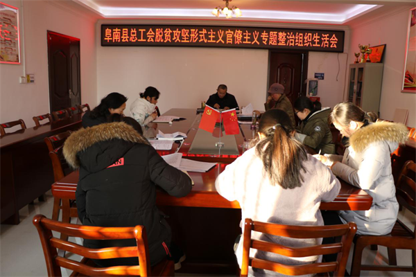 2019年1月23日,阜南縣總工會(huì)在機(jī)關(guān)二樓會(huì)議室召開(kāi)脫貧攻堅(jiān)形式主義官僚主義專(zhuān)題整治組織生活會(huì),會(huì)議由縣總工會(huì)黨組成員、副主席、支部書(shū)記申靈主持,縣總工會(huì)黨組書(shū)記、副主席冷治武出席會(huì)議。