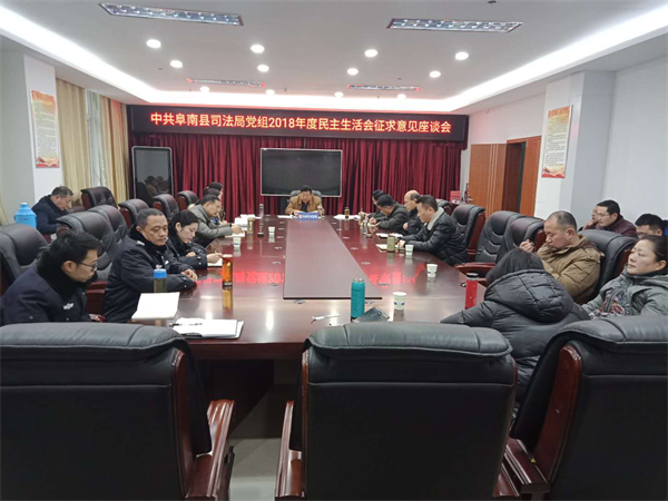 為增強(qiáng)民主生活會召開效果,1月25日上午,中共阜南縣司法局黨組召開2018年度民主生活會征求意見座談會,會議由局黨組書記、局長丁傳珠主持,局機(jī)關(guān)全體人員參加會議。