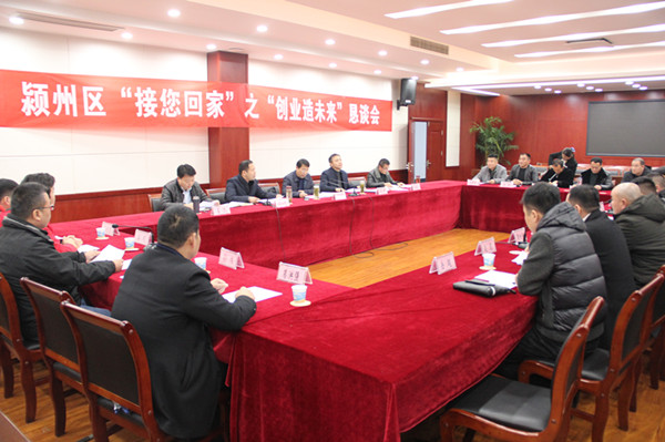 1月30日,潁州區(qū)召開“接您回家”之“創(chuàng)業(yè)造未來”懇談會。會議由區(qū)委常委、常務(wù)副區(qū)長孫存坤主持,區(qū)委書記張華久出席會議并講話。區(qū)委常委、組織部長、統(tǒng)戰(zhàn)部長劉軍,區(qū)委常委臧振林,副區(qū)長屈凱,區(qū)直有關(guān)部門、各鄉(xiāng)鎮(zhèn)街道負責同志及20多名返鄉(xiāng)人員代表、創(chuàng)業(yè)精英代表、在外創(chuàng)業(yè)潁州籍企業(yè)家代表以及潁州籍在外大學生參加了會議。