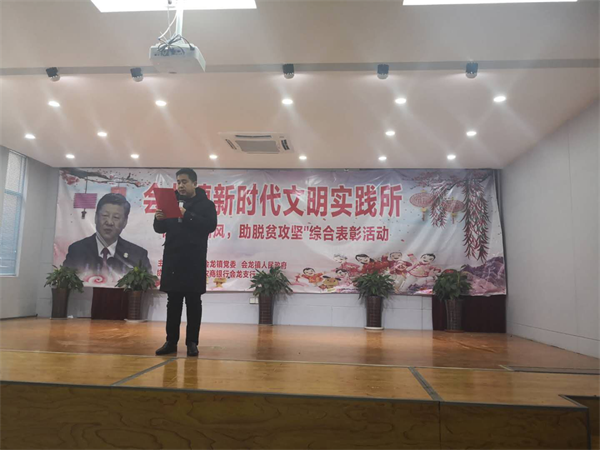 活動伊始,鎮(zhèn)黨委書記劉金堂在致辭中強調2018年會龍鎮(zhèn)各項工作均取得巨大的成就,這一切的成績,離不開在座的各位辛勤付出。開展新時代文明實踐所“樹文明新風助脫貧攻堅”綜合表彰活動,表彰一年來為會龍鎮(zhèn)經(jīng)濟社會發(fā)展、精神文明建設以及脫貧攻堅事業(yè)做出重大貢獻的人們,向你們表示衷心的感謝和美好的祝愿。新的一年,也希望各位鄉(xiāng)親發(fā)揚“擼起袖子加油干”的精神,勤勞致富,為實現(xiàn)中國民族的偉大復興而奮斗,為實現(xiàn)“中國夢”而奮斗。
