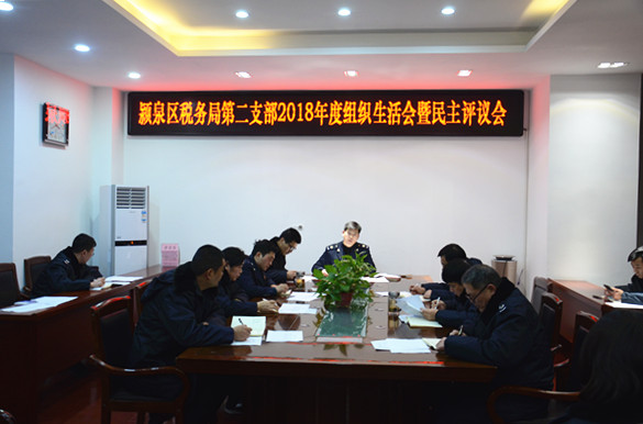 2月11日下午,潁泉區(qū)稅務(wù)局第二黨支部在區(qū)局三樓會議室召開2018年度組織生活會暨民主評議會。第二黨支部書記許士樂主持會議,支部全體黨員參加了會議。