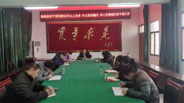 2月20日上午,阜南縣委組織部副部長、老干部局局長張飛雷同志為局全體黨員干部上了一堂《牢記殷殷囑托、用心做好老干部工作》的專題黨課。