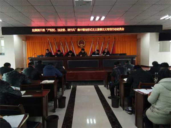 2月21日上午,阜南縣趙集鎮(zhèn)在鎮(zhèn)三樓會(huì)議室召開鎮(zhèn)村干部會(huì)議,學(xué)習(xí)《“嚴(yán)規(guī)矩、強(qiáng)監(jiān)督、轉(zhuǎn)作風(fēng)”集中整治形式主義官僚主義實(shí)施方案》,部署“嚴(yán)規(guī)矩、強(qiáng)監(jiān)督、轉(zhuǎn)作風(fēng)”集中整治形式主義官僚主義專項(xiàng)行動(dòng),鎮(zhèn)長(zhǎng)皇甫少鵬主持會(huì)議,全體鎮(zhèn)村干部及鎮(zhèn)直單位負(fù)責(zé)人參加會(huì)議。