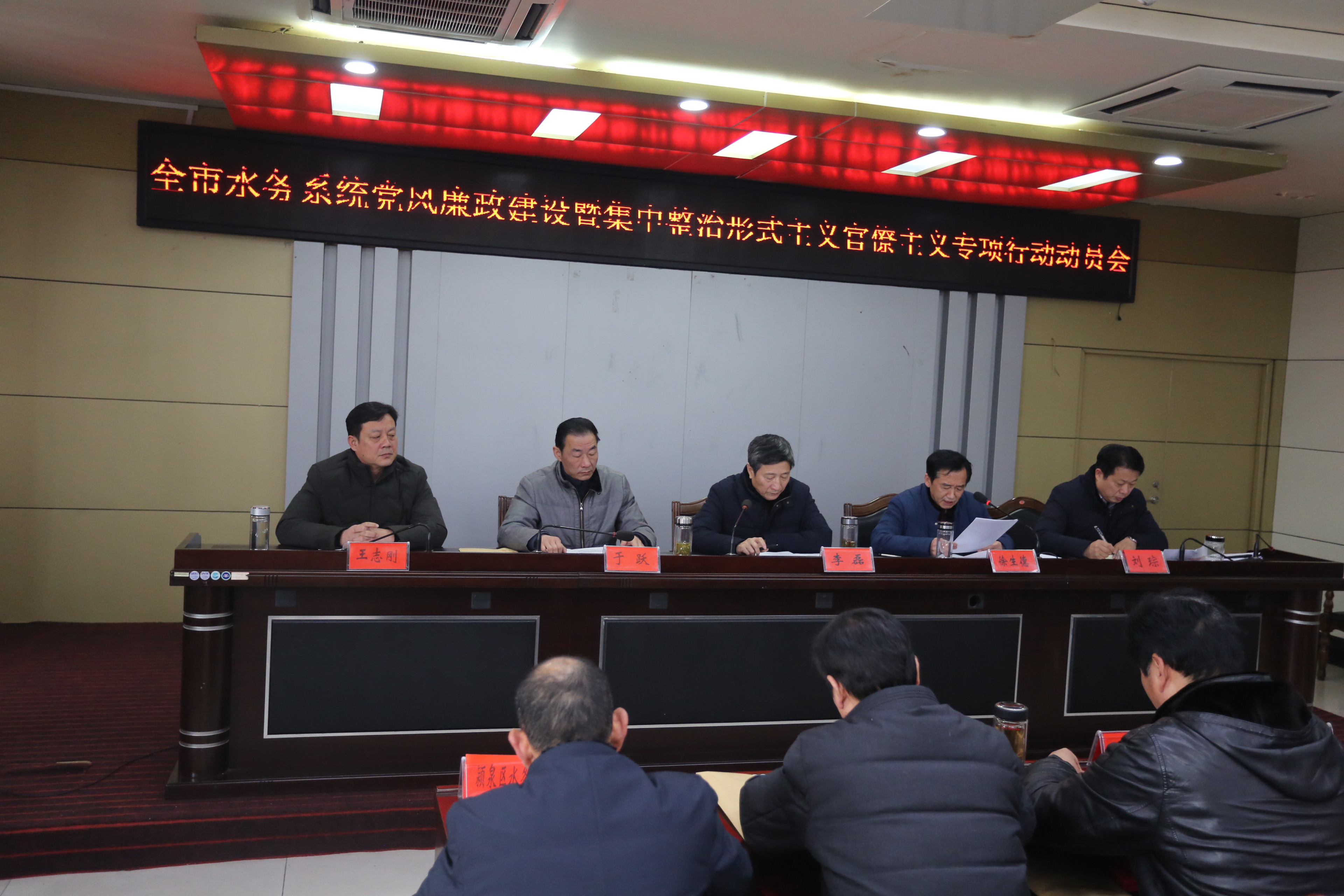 2月22日,市水務局召開2019年全市水務系統(tǒng)黨風廉政建設暨集中整治形式主義官僚主義專項行動動員會,回顧總結2018年黨風廉政建設工作情況,研究部署2019年工作任務,并對當前省委、市委提出的“嚴規(guī)矩、強監(jiān)督、轉(zhuǎn)作風”集中整治形式主義、官僚主義專項行動進行動員部署。市水務局黨組書記、局長李磊出席會議并講話,局黨組班子成員、派駐市農(nóng)委紀檢監(jiān)察組、縣市區(qū)水務局局長、局直各單位主要負責人和分管黨風廉政建設工作負責人、局機關各科室主要負責人參加會議。
