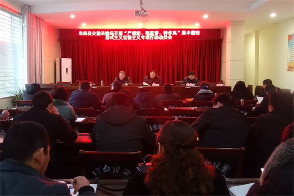 為深入學(xué)習(xí)貫徹習(xí)近平總書記關(guān)于力戒形式主義、官僚主義的重要論述和指示批示精神,堅決破除形式主義官僚主義,扎實(shí)完成脫貧攻堅巡視反饋整改工作,按照上級有關(guān)會議和文件精神,2月22日,阜南縣交通運(yùn)輸局召開“嚴(yán)規(guī)矩、強(qiáng)監(jiān)督、轉(zhuǎn)作風(fēng)”集中整治形式主義官僚主義專項行動動員會。局領(lǐng)導(dǎo)班子、機(jī)關(guān)各股室、二級機(jī)構(gòu)全體人員及各交管站隊負(fù)責(zé)人、各支部書記參加了會議。會議由張尚武主持。