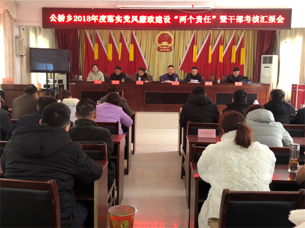2月25日,公橋鄉(xiāng)召開2018年度落實(shí)黨風(fēng)廉政建設(shè)“兩個(gè)責(zé)任”暨干部考核匯報(bào)會(huì),縣監(jiān)委委員沙松濤、縣紀(jì)委監(jiān)委特約監(jiān)督員曾曉斌、縣委組織部李影、縣紀(jì)委宣傳部張建到會(huì)指導(dǎo),鄉(xiāng)黨委書記李剛主持會(huì)議,鄉(xiāng)全體行政人員、事業(yè)站所長(zhǎng),村兩委主要負(fù)責(zé)人,農(nóng)民代表、個(gè)體戶代表、人大代表、政協(xié)委員各10人參加會(huì)議。
