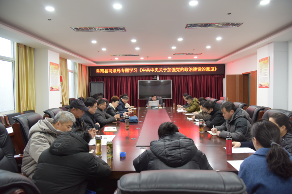 近日,阜南縣司法局召開機關例會,專題學習《中共中央關于加強黨的政治建設的意見》,會議由局黨組書記、局長丁傳珠主持,局機關全體人員參加會議。
