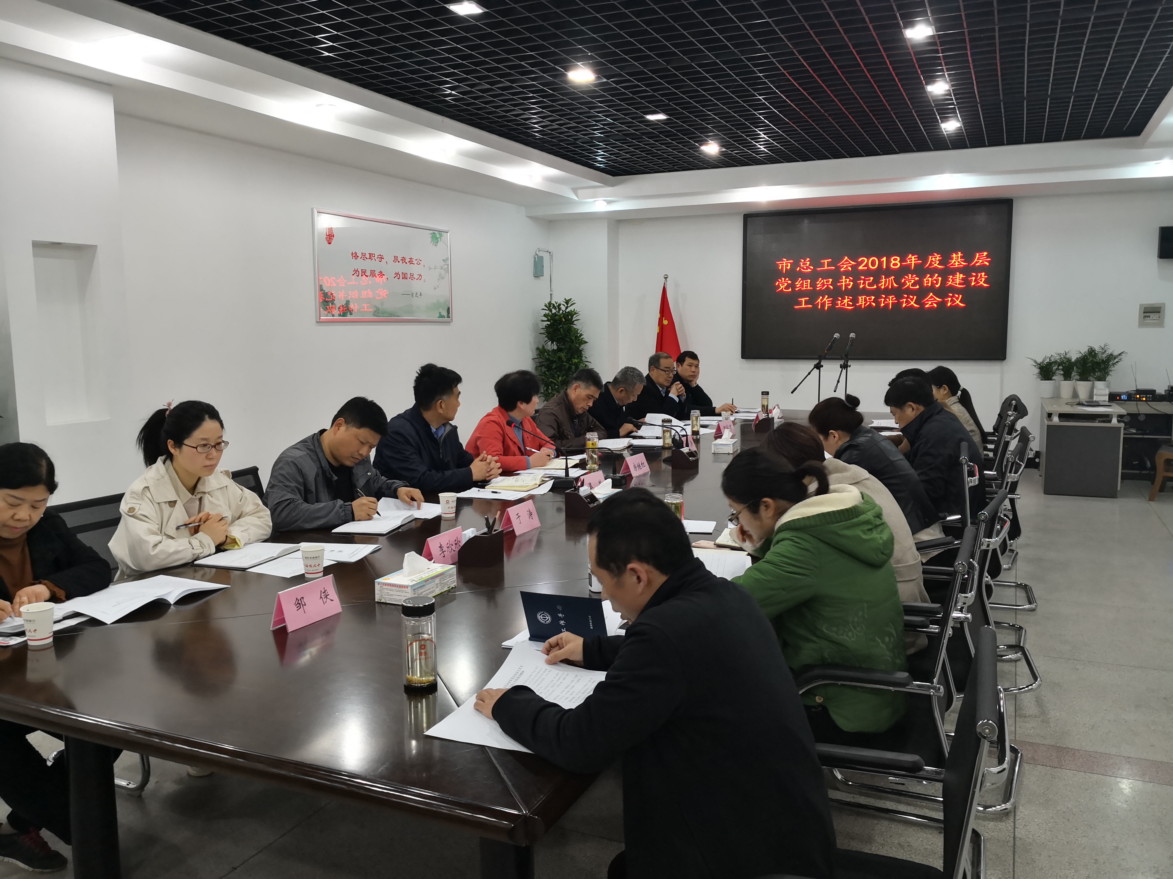 會上,傳達學習了市委領(lǐng)導在市委常委會上和市直機關(guān)黨的政治建設(shè)暨2018年度黨組(黨委)書記抓黨的建設(shè)述職評議會上的講話。聽取了市總工會各基層黨組織書記的述職報告。吳燕同志代表市總工會黨組班子逐一進行了點評,肯定了成績,指出了存在的問題,提出了今后努力的方向,幾名述職人員分別進行了表態(tài)。隨后組織了民主評議。