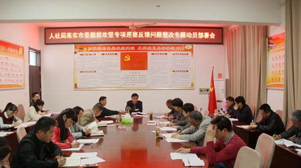 4月15日下午,太和縣人社局組織召開(kāi)市委脫貧攻堅(jiān)專(zhuān)項(xiàng)巡察反饋問(wèn)題整改工作動(dòng)員會(huì)議,局機(jī)關(guān)全體人員、二級(jí)機(jī)構(gòu)主要負(fù)責(zé)人參加,會(huì)議由局黨組副書(shū)記張立波同志主持。
