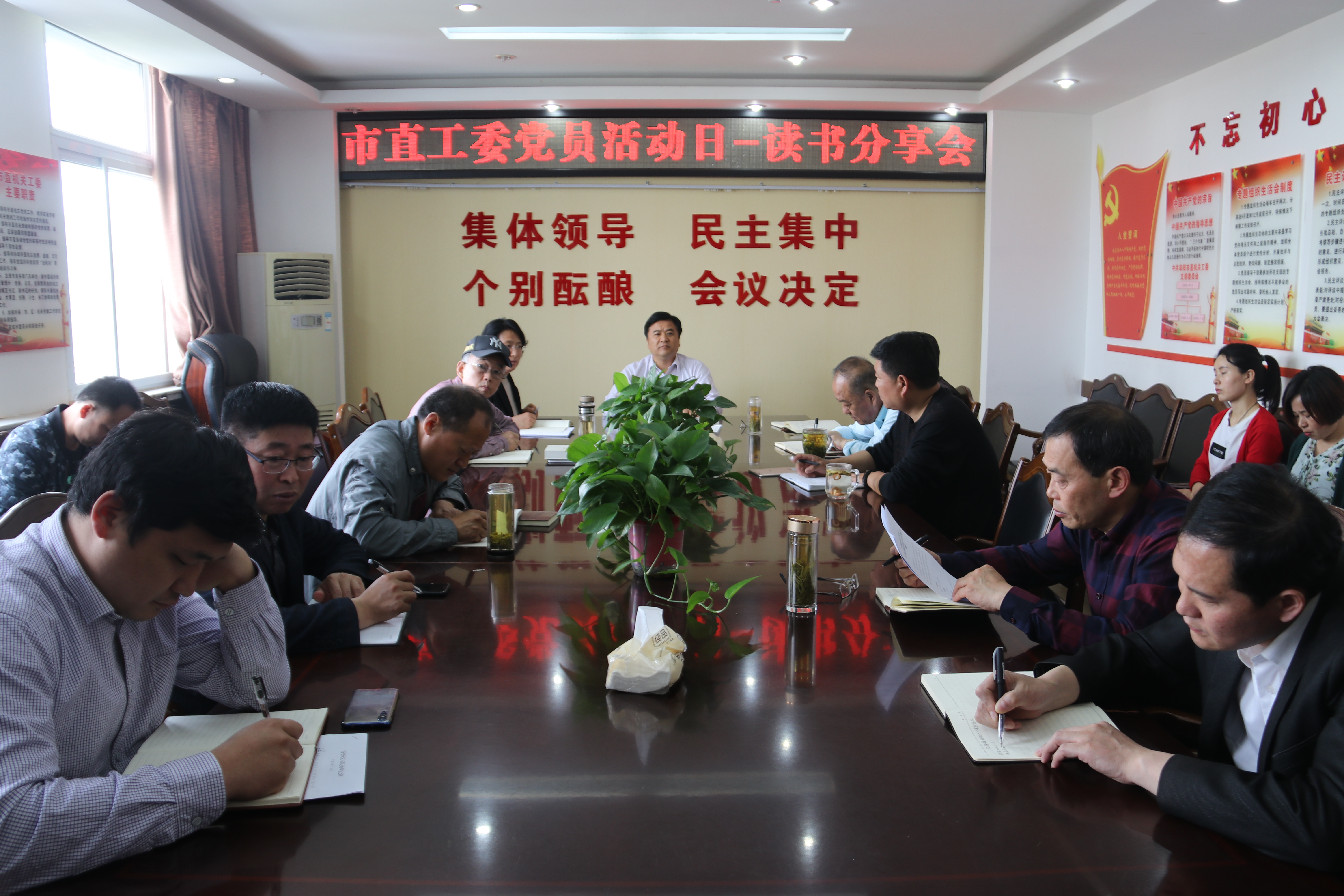 為貫徹落實第四屆市直機關“讀書月”活動要求,積極推動學習型黨組織建設,有效推動黨員干部熱愛讀書、創(chuàng)新工作、幸福生活,5月9日,市直工委機關黨支部以黨員活動日開展“讀書分享會”活動。工委書記李濤以普通黨員身份參加活動,工委副書記、黨支部書記周君主持會議。