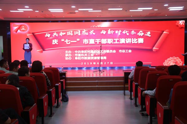 6月27日,慶七一“與共和國同成長、與新時(shí)代齊奮進(jìn)”演講決賽在市數(shù)據(jù)資源管理局多功能廳舉行。市直工委書記李濤,市總工會(huì)黨組書記、副主席房繼紅,市直工委副書記周君,市總工會(huì)黨組成員、經(jīng)審會(huì)主任吳燕觀看了比賽并為獲獎(jiǎng)選手頒獎(jiǎng)。