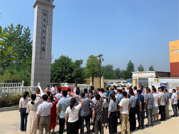 在柴集鎮(zhèn)張克元烈士墓,柴集鎮(zhèn)機(jī)關(guān)事業(yè)全體黨員在鎮(zhèn)武裝部長趙興富帶領(lǐng)下整齊隊列,面對鮮紅的黨旗,舉起右手、莊嚴(yán)宣誓。在莊嚴(yán)肅穆的張克元烈士陵墓前深深鞠躬,深切緬懷革命先烈,表達(dá)崇高敬意。