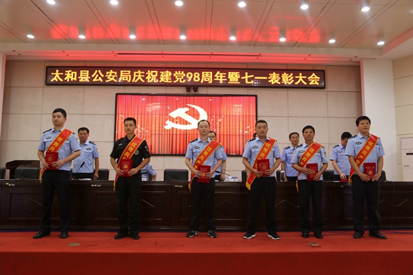會上,全體黨員民警齊聲奏唱《中華人民共和國國歌》,并高舉右手,重溫入黨誓詞。接著,局黨委委員、副局長蔡廣輝宣讀了太和縣公安局《關(guān)于表彰2019年度先進基層黨組織、優(yōu)秀黨員和優(yōu)秀黨務(wù)工作者的決定》,會議為受到表彰的先進集體和優(yōu)秀個人分別頒發(fā)了獎匾和榮譽證書。