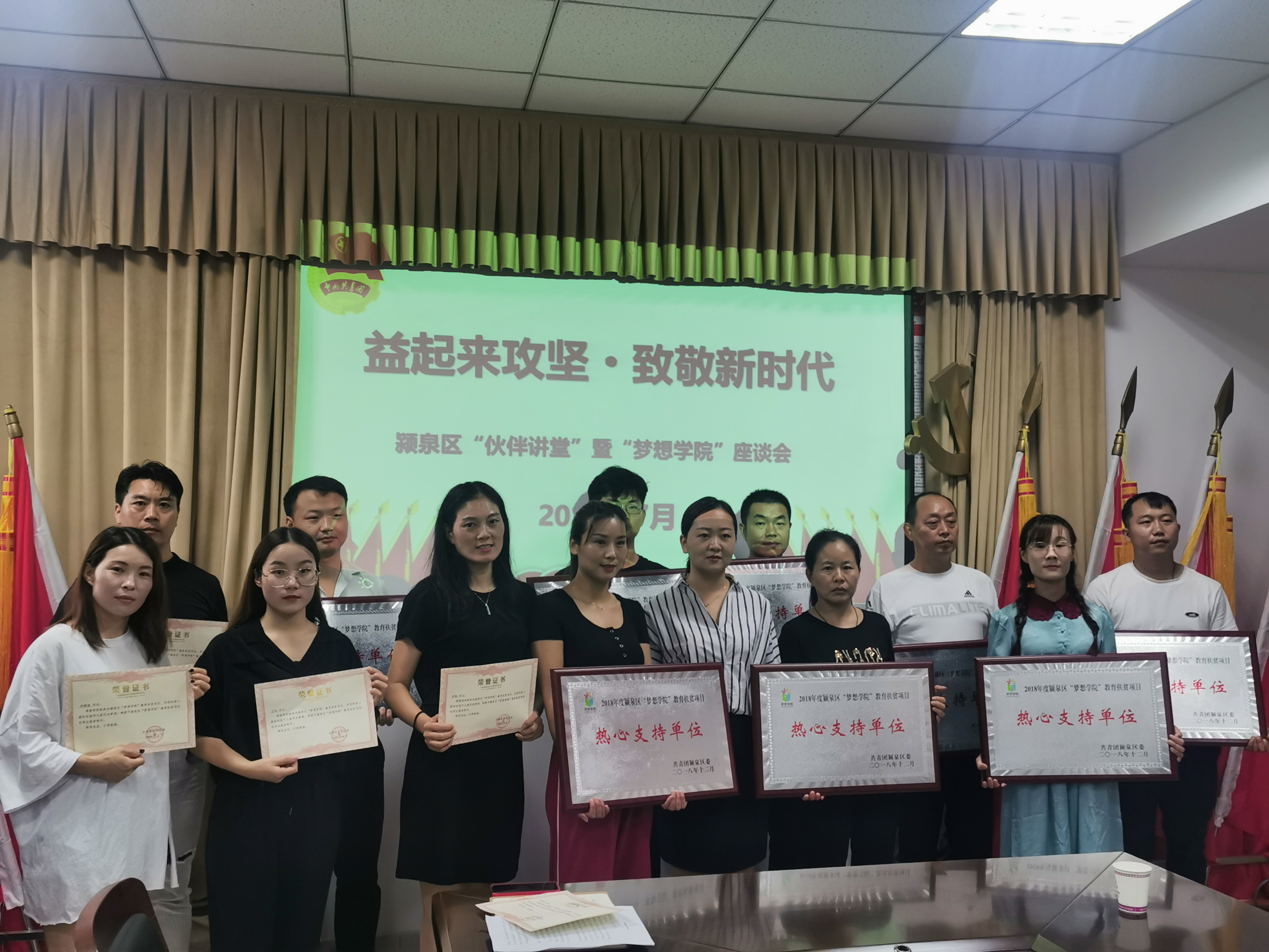 近日,團(tuán)潁泉區(qū)委召開“伙伴講堂”暨“夢想學(xué)院”教育扶貧志愿服務(wù)活動座談會。潁泉區(qū)“夢想學(xué)院”支教教師代表和“夢想學(xué)院”負(fù)責(zé)人代表參加座談。
