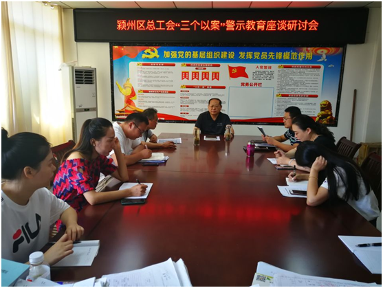 7月31日上午,潁州區(qū)總工會組織全體黨員干部召開“以案示警、以案為戒、以案促改”警示教育專題學(xué)習(xí)研討會。區(qū)總工會黨組書記、主席張彪主持會議。