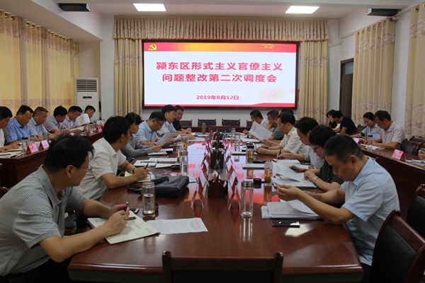 8月12日上午,潁東區(qū)召開形式主義官僚主義問題整改第二次調(diào)度會,市政協(xié)副主席、區(qū)委書記顧恒中主持會議并講話。區(qū)領(lǐng)導(dǎo)張銀軍、王顯明、劉小平、程傳雷、芮磊、王飛虎參加會議。