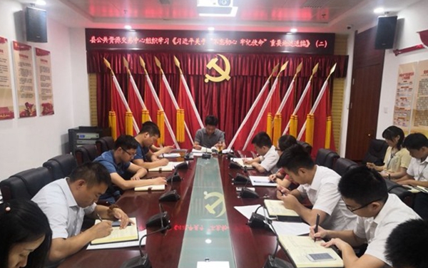 2019年8月19日,太和縣公共資源交易中心召開會議,組織學(xué)習(xí)《習(xí)近平關(guān)于“不忘初心、牢記使命”重要論述選編》,交易中心全體人員參加會議,會議由交易中心主任龍建輝主持。