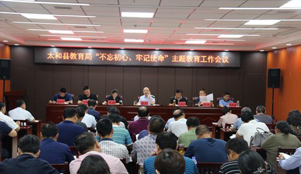 9月15日下午,太和縣教育局召開“不忘初心、牢記使命”主題教育工作會議,縣教育局黨組書記徐輝作動員講話,縣委第五巡回指導(dǎo)組組長李福東作指導(dǎo)講話。