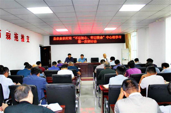 9月23日,縣農(nóng)業(yè)農(nóng)村局開展“不忘初心、牢記使命”主題教育第一次集中學(xué)習(xí)研討會(huì),局黨委委員、機(jī)關(guān)全體黨員干部、二級(jí)單位黨組織主要負(fù)責(zé)人參加會(huì)議。局黨委書記、局長田秋實(shí)主持會(huì)議。