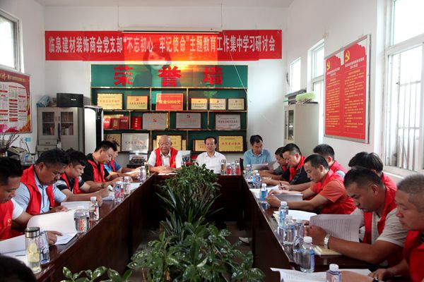 商會(huì)黨支部書記劉青海傳達(dá)了縣委關(guān)于開展“不忘初心、牢記使命”主題教育工作動(dòng)員會(huì)會(huì)議精神;領(lǐng)學(xué)了習(xí)近平總書記在“不忘初心、牢記使命”主題教育工作會(huì)議上的重要講話和省、市、縣有關(guān)部署文件;重申了建材裝飾商會(huì)黨支部開展“不忘初心、牢記使命”主題教育工作實(shí)施方案。柳標(biāo)以入黨誓詞為題,重溫黨的紀(jì)律,給大家上了一堂生動(dòng)的黨課。