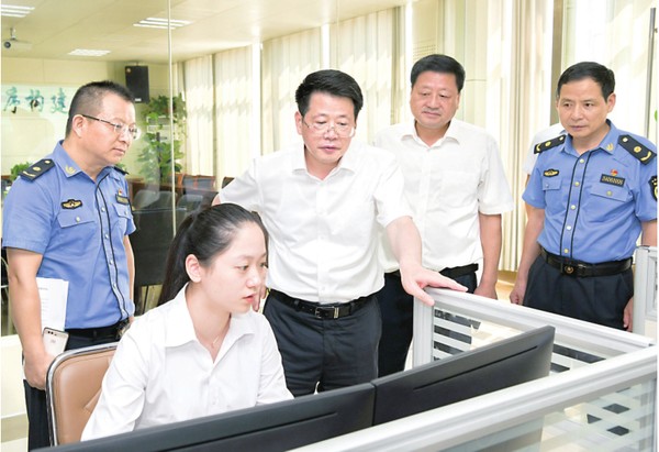 楊光榮還來(lái)到市城管局?jǐn)?shù)字化城管指揮中心,了解12319熱線運(yùn)行、重點(diǎn)區(qū)域監(jiān)控設(shè)置,以及信息收集、問(wèn)題處置情況。楊光榮要求,要進(jìn)一步加強(qiáng)信息共享,利用現(xiàn)代科技力量,把大數(shù)據(jù)應(yīng)用到智慧城市管理中來(lái);要加強(qiáng)視頻監(jiān)控巡察,提高數(shù)字城管案件的派遣和處理效率;要認(rèn)真做好重點(diǎn)路段視頻監(jiān)控和網(wǎng)格員上路巡查,進(jìn)一步提升城市管理能力和水平。