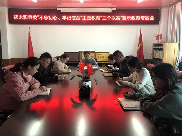 為鞏固深化 “以案示警、以案為戒、以案促改”警示教育成果,扎實(shí)推進(jìn)第二批主題教育工作,10月14日,團(tuán)太和縣委召開“不忘初心、牢記使命”主題教育“三個(gè)以案”警示教育專題會(huì)。會(huì)議由團(tuán)縣委副書記孔蓓主持,團(tuán)縣委全體人員參加會(huì)議。