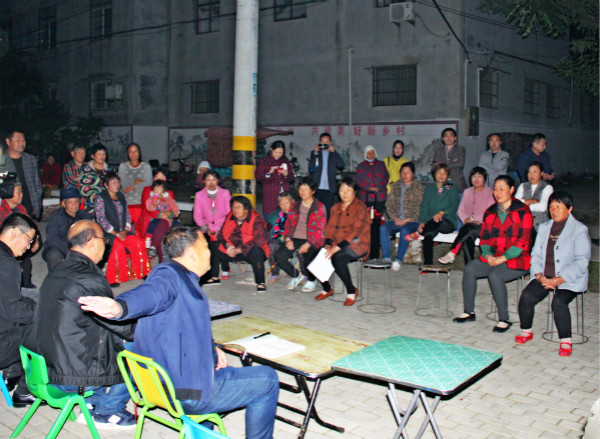 在周橋村孟大莊自然村文化廣場,城關(guān)街道辦事處負(fù)責(zé)人、周橋村“兩委”負(fù)責(zé)同志與群眾圍坐在一起,話家常、談?wù)?、聊發(fā)展,偌大的文化廣場上站滿了前來參加的群眾,大家你一言,我一語,從改革開放前說到二十一世紀(jì);從修橋鋪路,說到危房改造;從吃穿住行,說到娛樂生活?!耙乖挕敝?,群眾提出的問題主要集中在基礎(chǔ)設(shè)施、公共服務(wù)、休閑娛樂等方面,城關(guān)街道辦事處對(duì)能夠短期解決的問題現(xiàn)場安排街道和行政村干部立即著手解決,對(duì)需要調(diào)研后解決的問題進(jìn)行了登記備案。