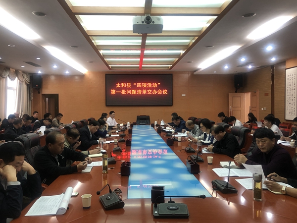 10月24日下午,太和縣召開“四項活動”第一批問題清單交辦會,縣直有關(guān)單位主要負責(zé)人、縣委各巡回指導(dǎo)組組長參會,會議由縣委辦公室主任、縣“四項活動”領(lǐng)導(dǎo)小組成員潘如年主持。