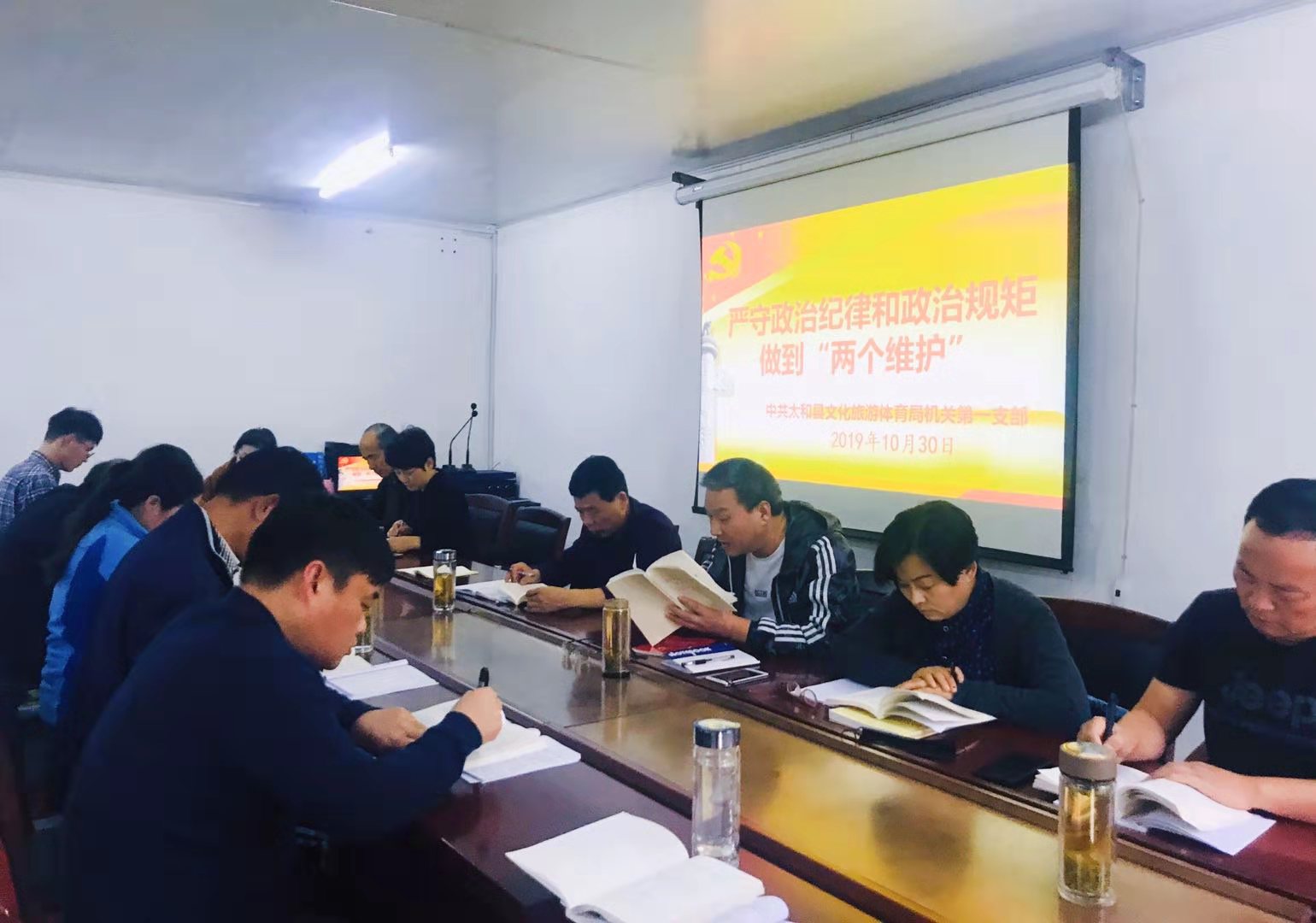 10月30日下午,太和縣文化旅游體育局機(jī)關(guān)第一支部組織全體黨員圍繞嚴(yán)守政治紀(jì)律和政治規(guī)矩、做到“兩個維護(hù)”專題,開展“不忘初心、牢記使命”主題教育第六次集中學(xué)習(xí)研討。