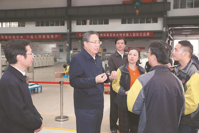 11月6日,省委書記李錦斌深入蕪湖市宣講黨的十九屆四中全會精神。在蕪湖市埃夫特智能裝備公司,他向黨組織負責人了解學習貫徹全會精神情況,要求緊密聯(lián)系企業(yè)實際,注重學懂弄通做實,努力在自主創(chuàng)新上取得更大突破。本報記者 徐國康 攝