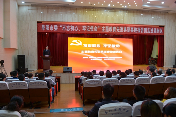 參會人員首先觀看了市委“不忘初心、牢記使命”主題教育先進事跡報告團專題片。報告會上,阜陽公交9路線駕駛員陳燕,市消防救援支隊潁州大隊清河路中隊中隊長張龍龍,潁東區(qū)河東街道訾營社區(qū)黨委書記、主任郝云波,阜南縣新村鎮(zhèn)中心小學教師劉海娟,省殘聯(lián)駐潁泉區(qū)聞集鎮(zhèn)劉伏莊村第一書記、扶貧工作隊隊長賀俊強5位報告團成員從不同身份、不同領(lǐng)域、不同視角,用感人的故事和深情的語言講述了立足崗位做貢獻,不忘初心、無私奉獻的先進事跡,引起在場同志強烈共鳴,現(xiàn)場不時響起熱烈掌聲。