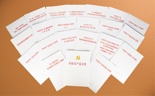習近平總書記強調,“我國社會主義政治制度優(yōu)越性的一個突出特點是黨總攬全局、協(xié)調各方的領導核心作用,形象地說是‘眾星捧月’,這個‘月’就是中國共產(chǎn)黨”。圖為黨的十八大以來,制定和修訂的部分重要黨內(nèi)法規(guī)制度。