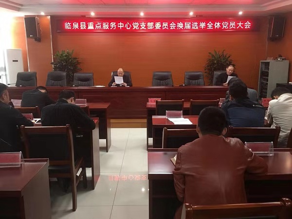 11月18日,臨泉縣重點工程建設服務中心黨支部黨員大會暨黨支部換屆大會順利召開。縣重點工程建設服務中心黨組書記、主任謝尚杰及全體黨員參加會議。